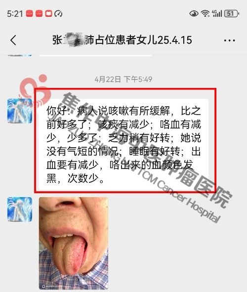 肺占位患者用药7天咳嗽咳痰咳血气喘乏力都减轻好转